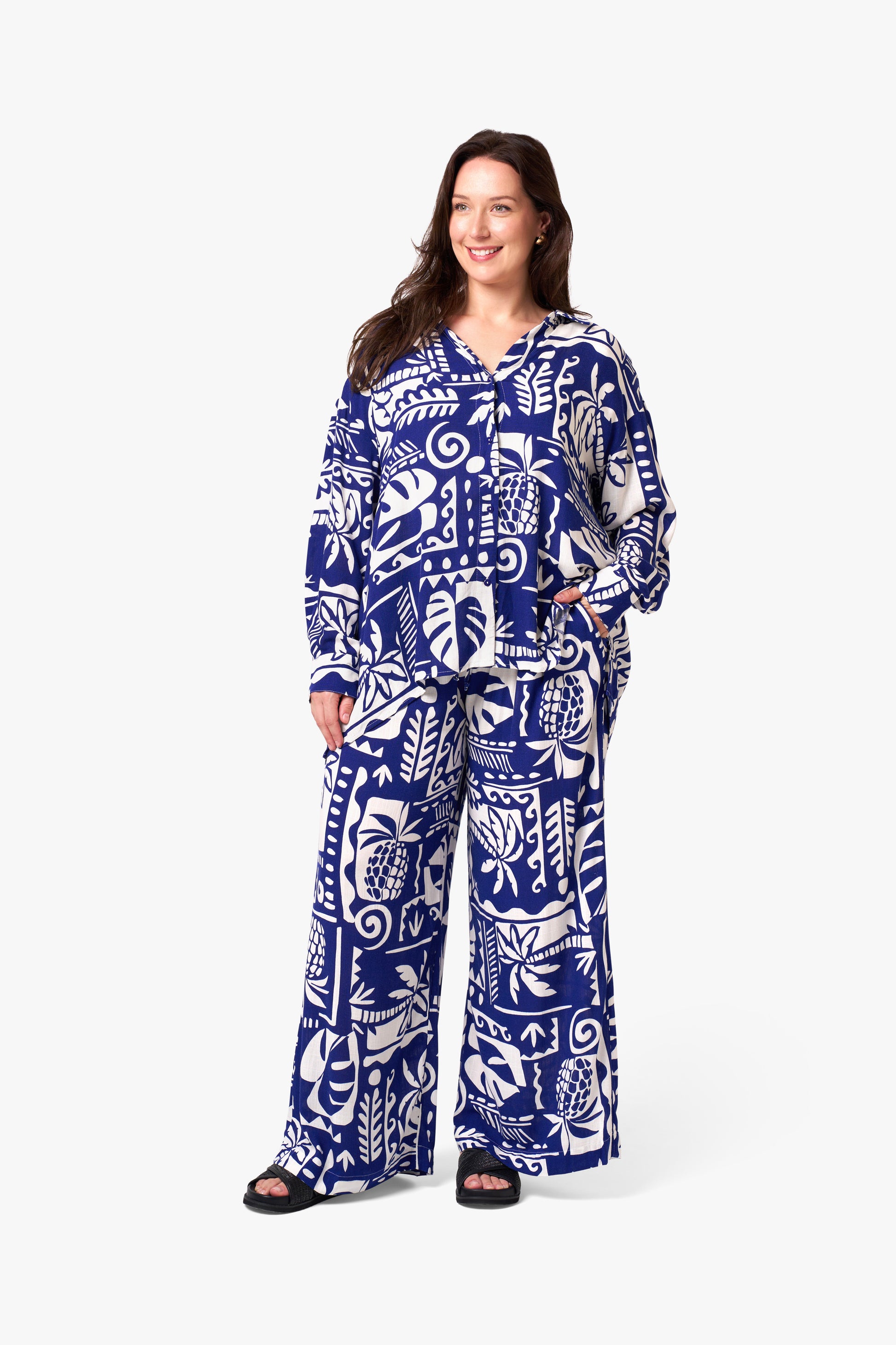 Elevate your wardrobe with the Zephyr Shirt in striking navy white print. This modern take on the classic shirt combines contemporary design elements with the luxurious comfort of sustainable bamboo rayon.